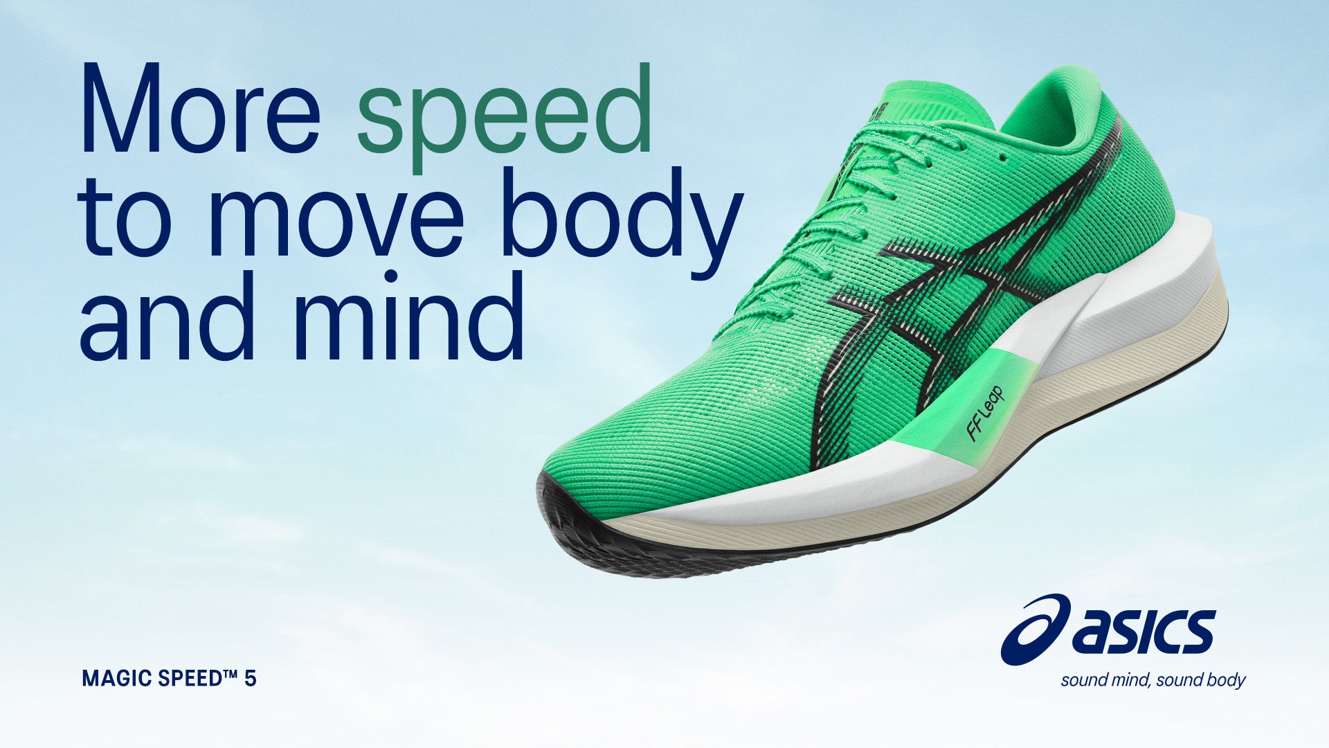 ASICS lancia la nuovissima MAGIC SPEED™ 5, una scarpa da allenamento e da corsa più leggera e agile. Grazie alla schiuma dell'intersuola FF LEAP ™ e alla piastra in carbonio, questa scarpa permetterà ai corridori di raggiungere la marcia successiva e di muoversi con il corpo per muovere la mente.