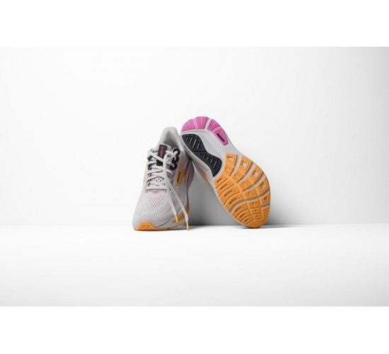 Anche l’intersuola è stata aggiornata con scanalature ad hoc che ne favoriscono la flessibilità così da seguire i movimenti del piede, agevolare le transizioni tacco-punta e rendere ogni falcata efficiente.